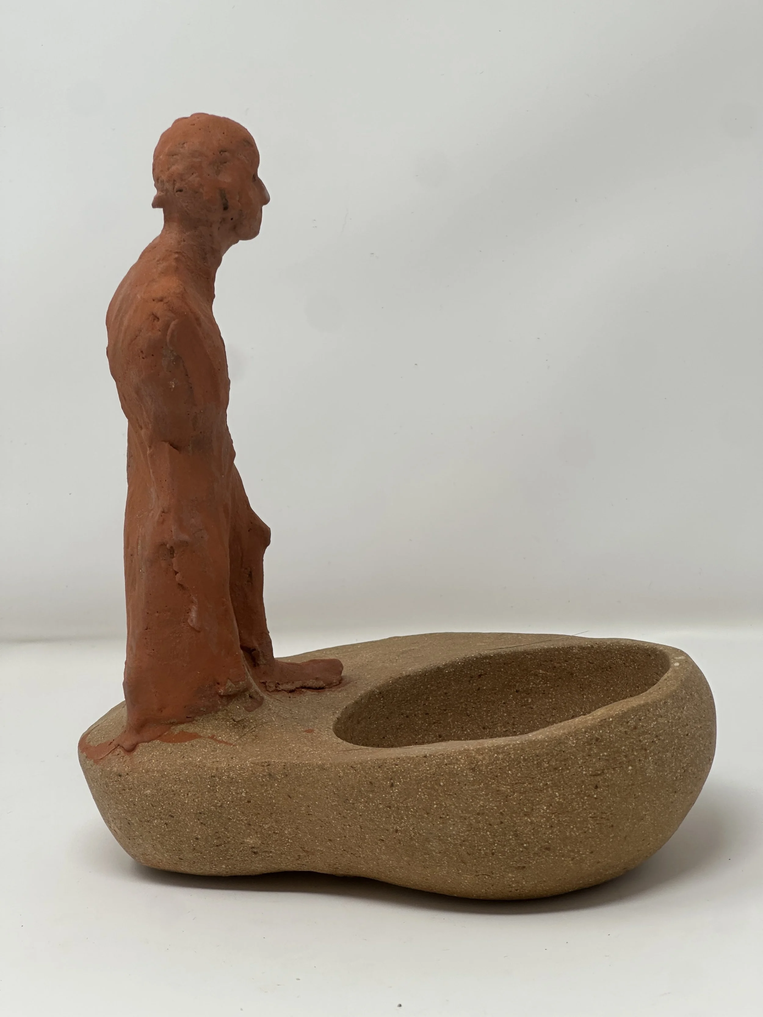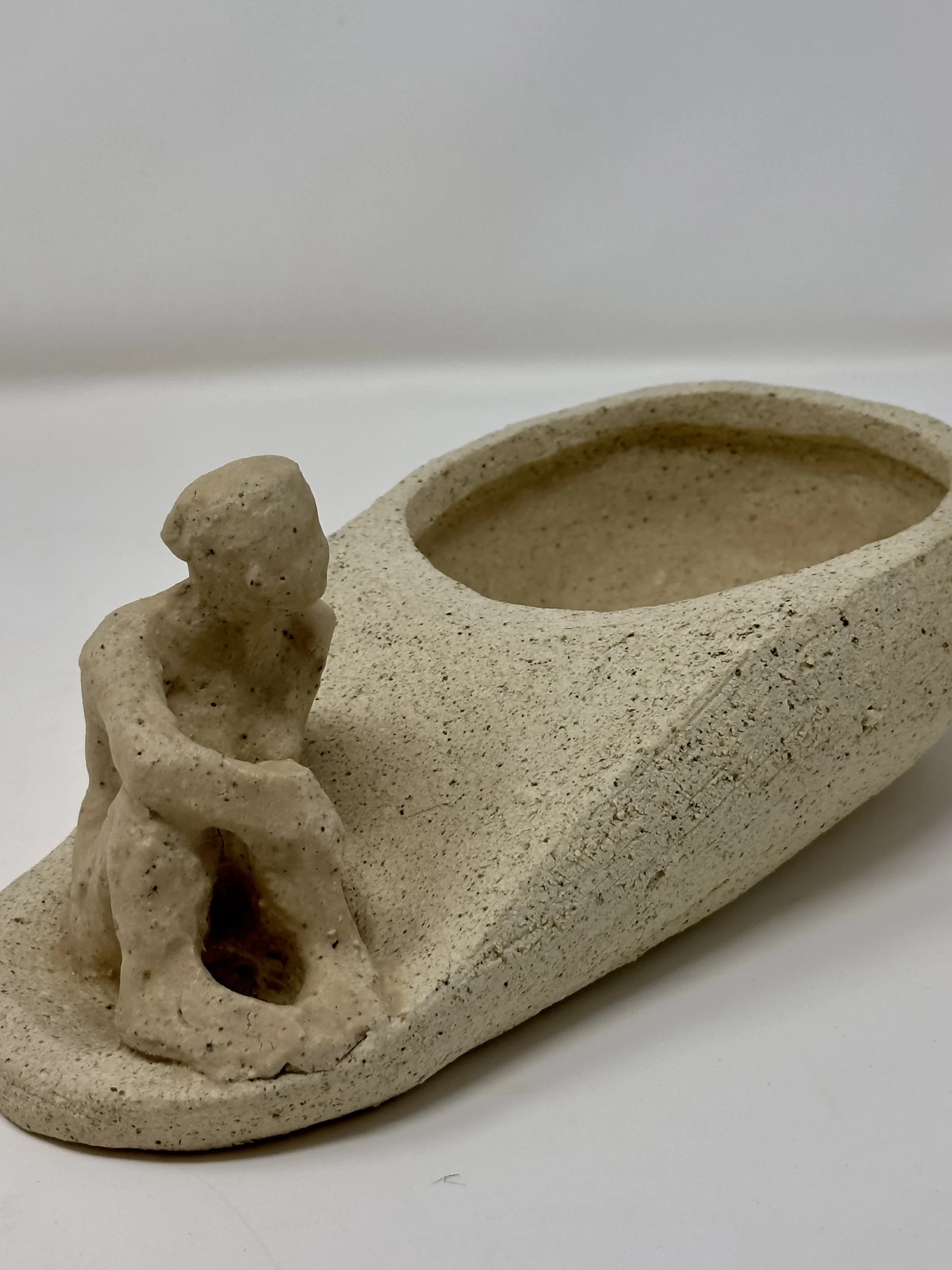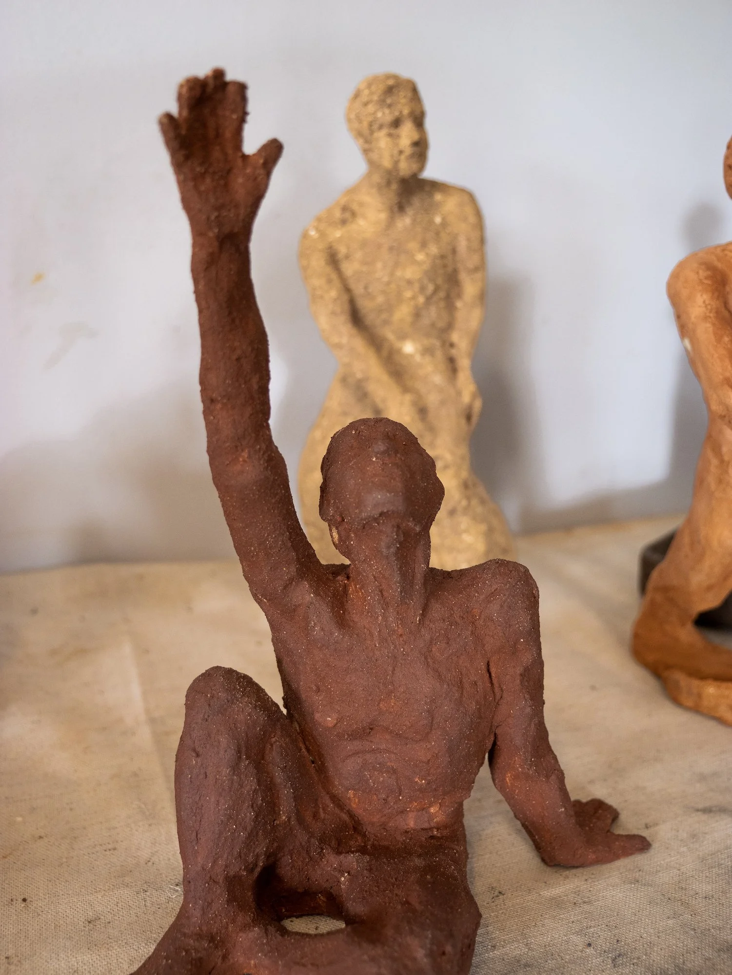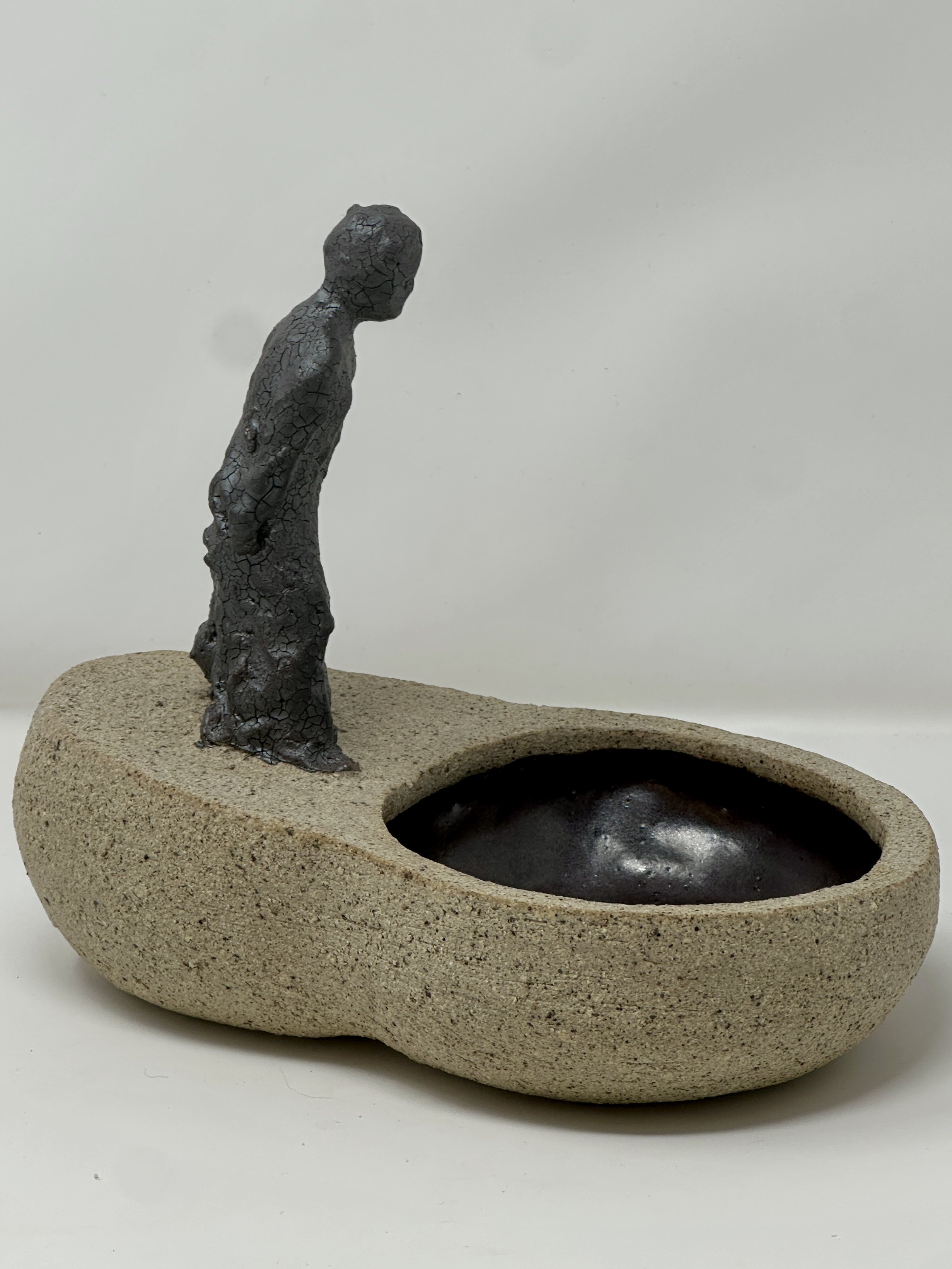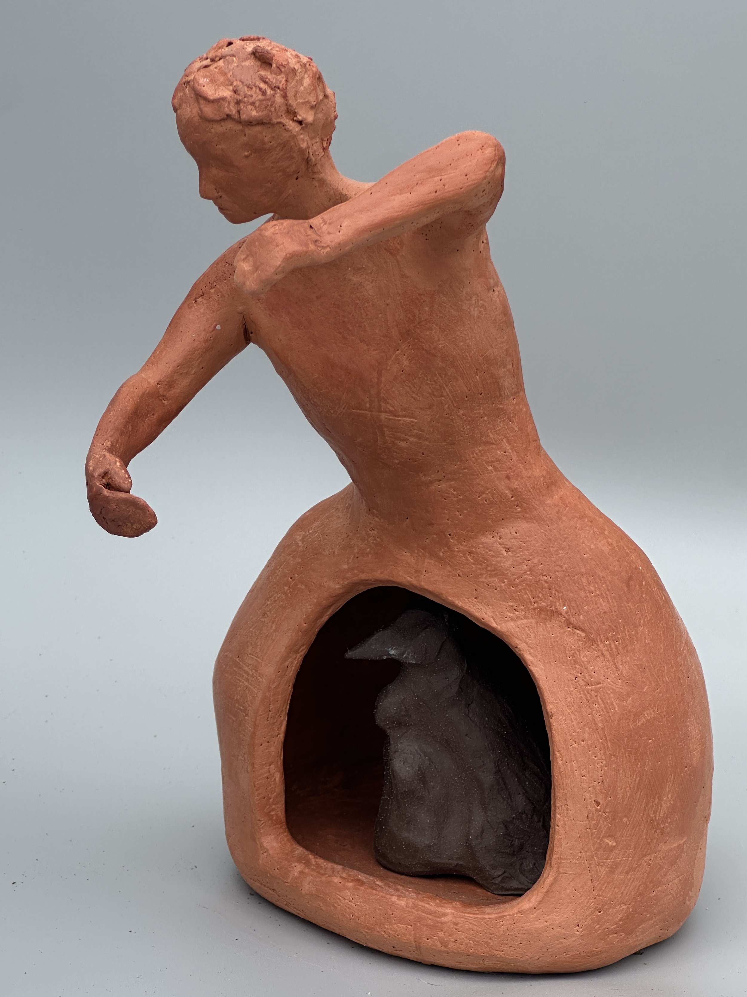 Hand collecting and processing clay is a way to orient myself in the landscape, connecting body and place. Clays take on different colors depending on both the mineral composition as well as on the firing temperature, and the unpredictability of working with minimally processed materials is one of the rewards of this work. Most of these pieces use clays form the Rocky Mountains or from sites where my family has lived in the recent or more distant past. Land and ideas about belonging are intertwined, and the variety of colors speaks to the variety of places of origin and “home” in modern America.